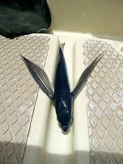 Then with a sudden “whap” a six-inch flying fish landed at our feet in the